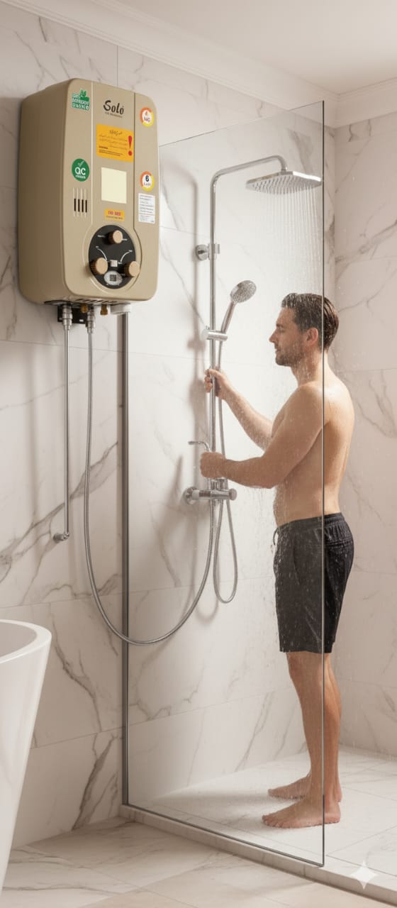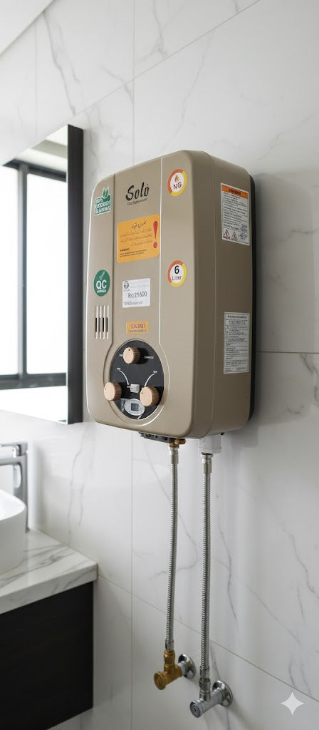 This geyser is compatible with both SSGC Natural Gas and LPG (Cylinder Gas), making it suitable for all setups.